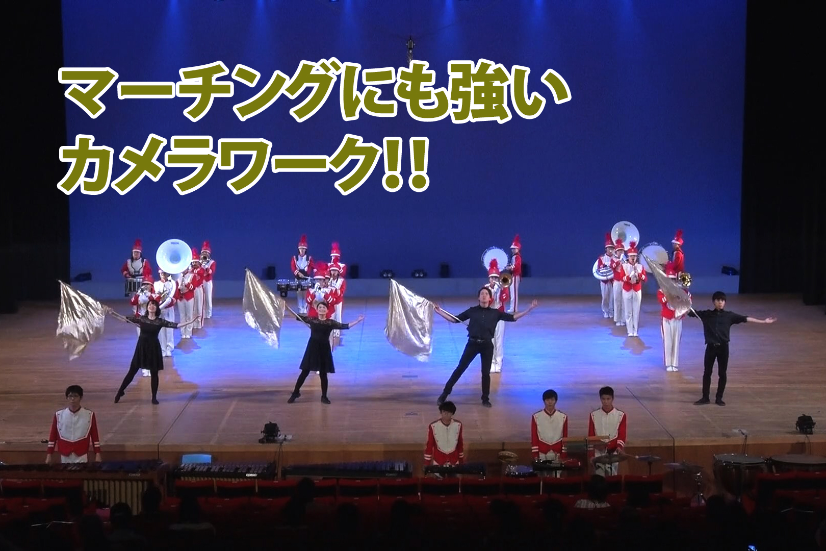 マーチングは動きがあるので通常の演奏とは違う、フォーメーションも魅せるカメラワークが必要です。演奏会撮影だけでなく動きのあるダンス撮影実績も多数あるぐっでぃテレビだからこそ、マーチングにも対応した撮影スタイルが可能です。